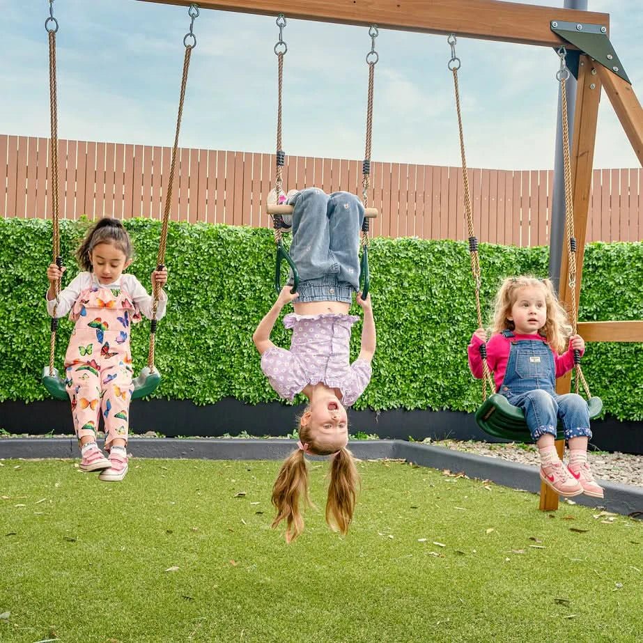kids, offering more space and excitement than ever before. Kids can challenge themselves on the rock-climbing wall or easily access the play area via the sturdy ladder. The 3 Position Swing Beam comes equipped with two swings and a trapeze, giving your little ones endless options for a thrilling playtime. All Lifespan Kids products are built to last, with high-strength steel brackets featuring powder coating for maximum weather protection. The timber undergoes a high-temperature treatment, making it durable, resistant to rot and decay, and sustainably sourced to ensure a brighter future for your children.