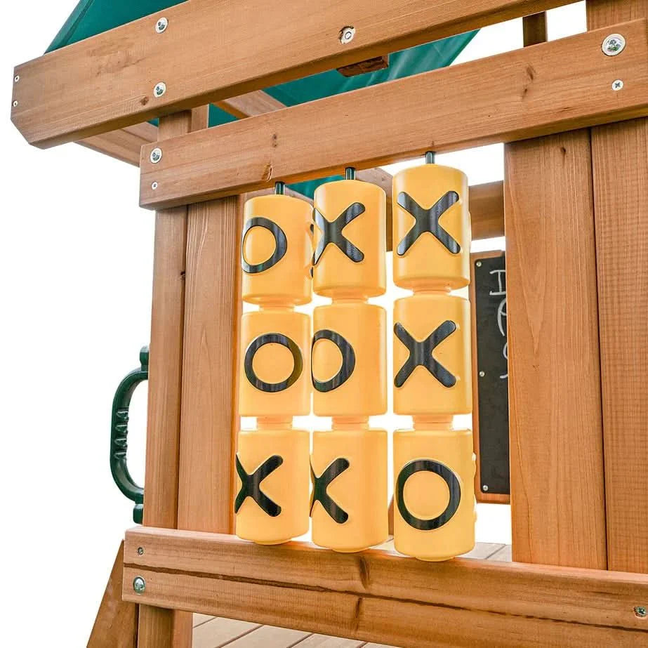 - 120cm high raised playhouse with noughts & crosses, telescope & chalkboard