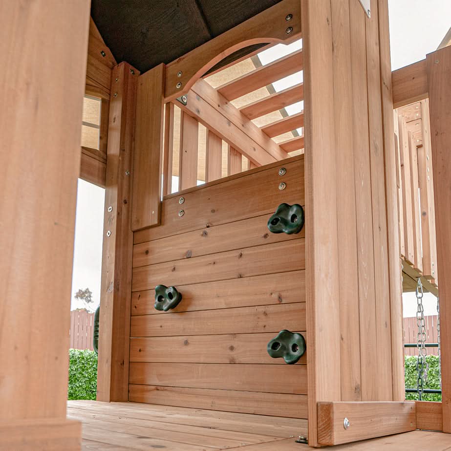 Reach new heights with the Kensington Play Centre Set, a unique and thrilling choice for backyard adventures that captivate Aussie kids. This exceptional playset is packed with features, including the elevated crow's nest where kids can ascend through a tunnel and into the spacious playhouse. The set includes a 2.2m wavy slide for exhilarating rides, a 2-position swing beam and monkey bars that connect seamlessly to the playhouse for added excitement. Below, a hideaway area features a picnic bench and snack window, inviting imaginative play. With a sturdy timber roof that enhances both durability and charm, the Kensington Play Centre is rigorously tested to Australian Standards, ensuring a safe and engaging environment for children. This play centre promises endless fun and adventure, making it the perfect addition to any backyard.
